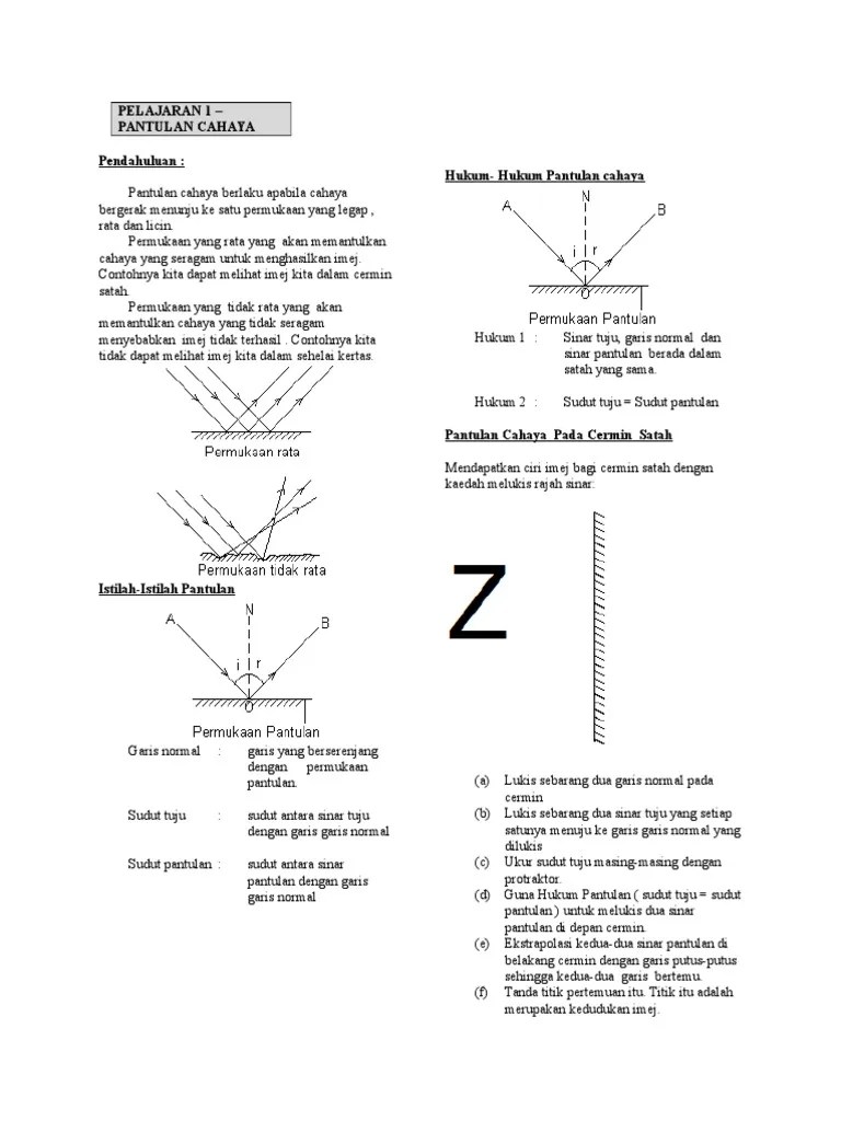 Cahaya, warna & penglihatan 7.1: 8.3 pantulan cahaya [ciri imej pada cermin . Jarak imej * songsang sisi * maya ciri yang kedua tu paling popular.